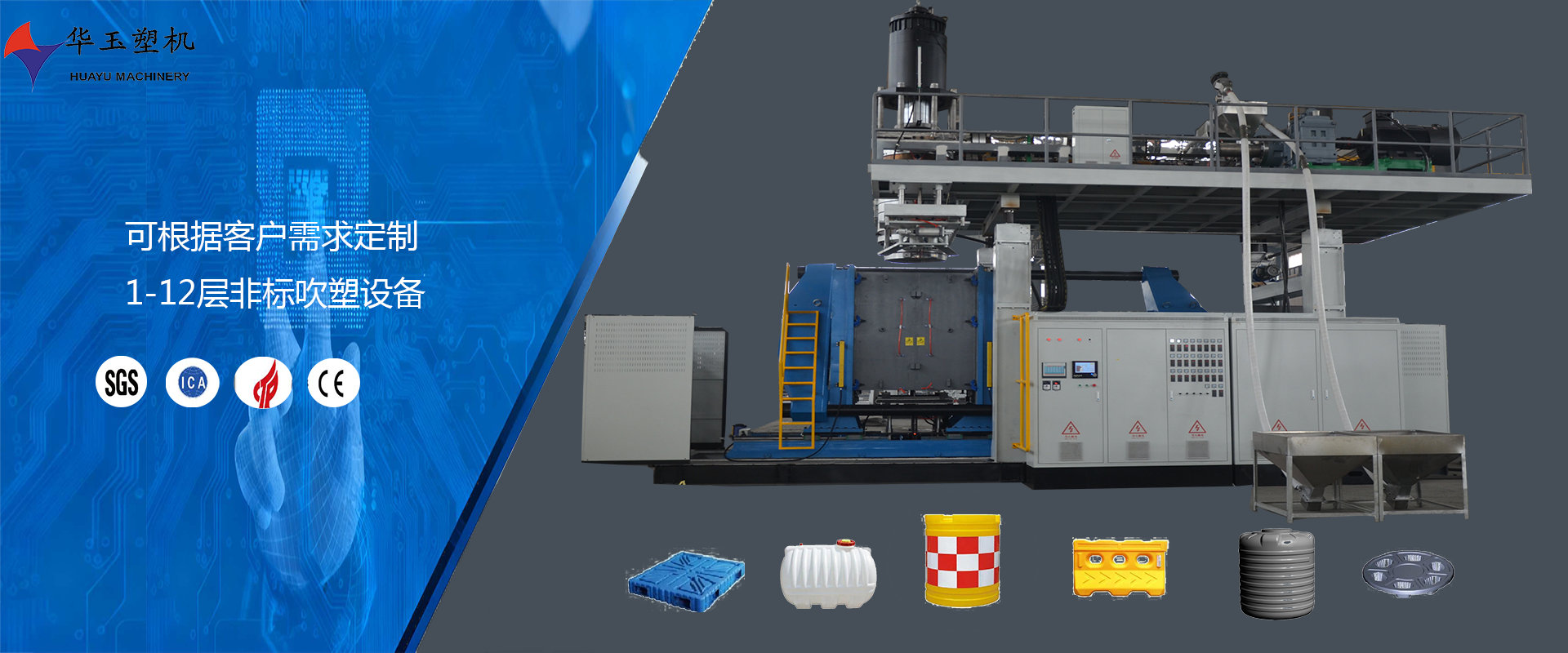 濰坊市華玉塑料機械有限公司創(chuàng)辦于貳零零貳年,是超大型全自動中空吹塑設備專業(yè)生產(chǎn)廠家。公司融合國內(nèi)外先進技術(shù)和理念,專業(yè)設計、生產(chǎn)、銷售一層到十層的大型全自動中空成型機組。我公司生產(chǎn)的各型號吹塑機可生產(chǎn)50升到30,000升的各類塑料水桶,噸桶、雙環(huán)桶、水馬、路錐、隔離墻托盤、桌板、浮筒、皮劃艇、工具箱包等中空制品。優(yōu)良的品質(zhì)、穩(wěn)定的性能、優(yōu)越的性價比使公司產(chǎn)品不僅暢銷國內(nèi)市場,并出口到亞洲、東南亞、中東、歐洲、北美、南美、非洲等80多個國家和地區(qū),深受客戶的好評...
